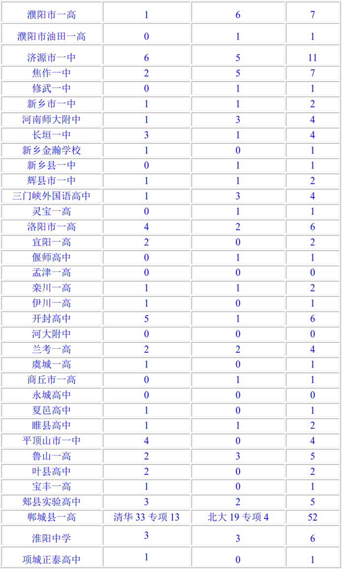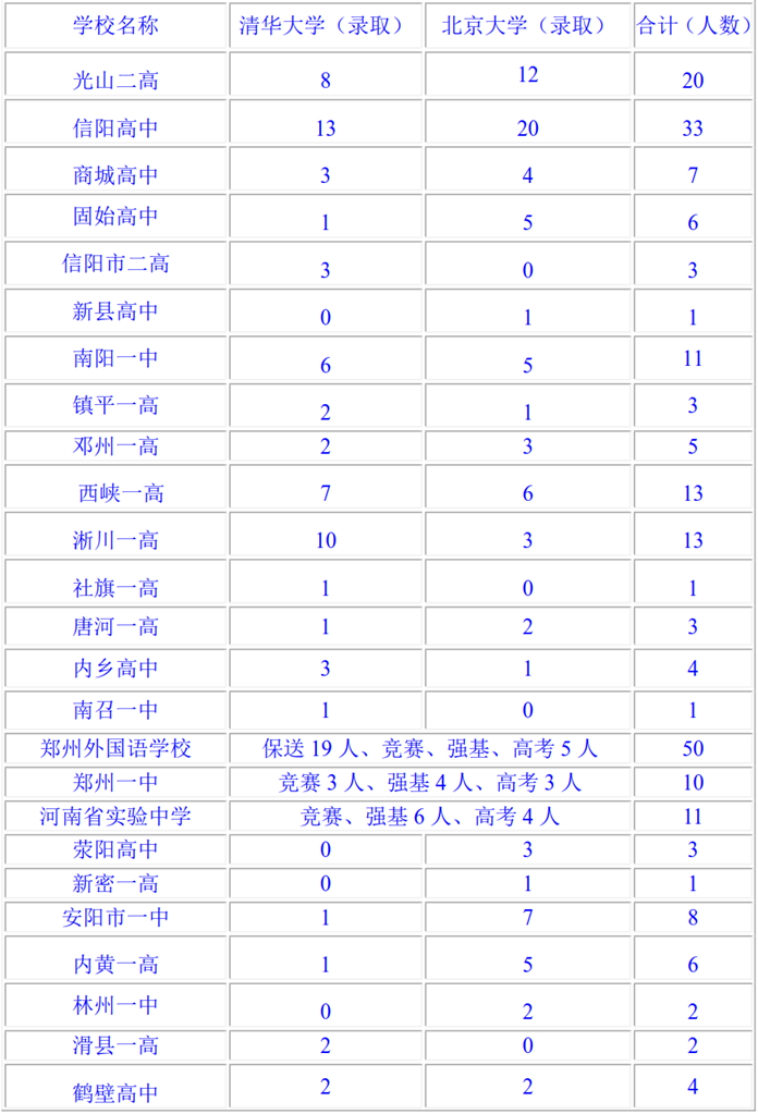 > 2025年河南省高考各高中学校清华、北大录取分布数据