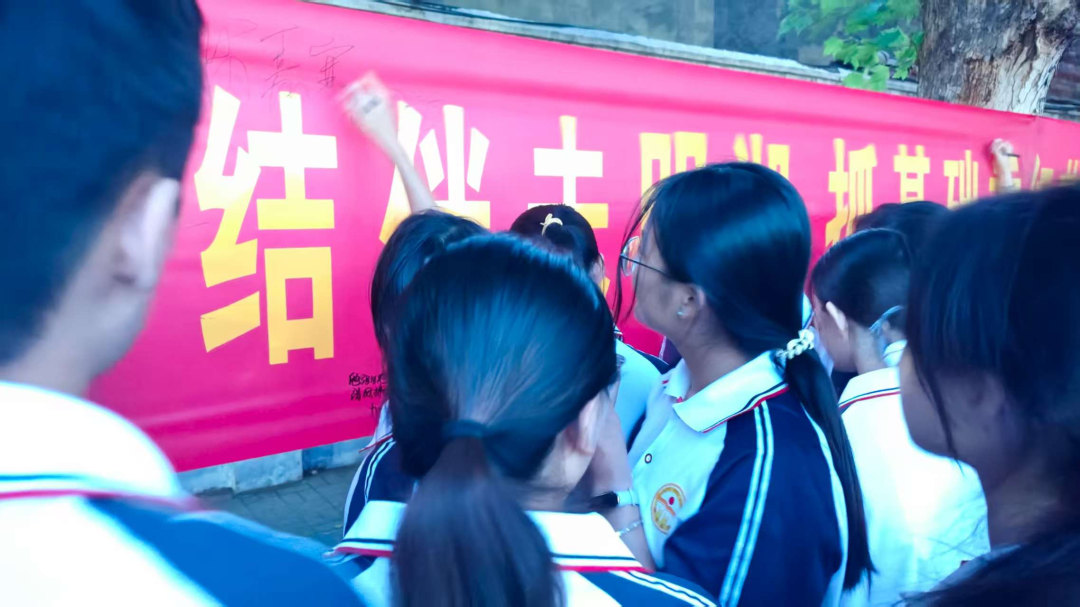 典礼最后,同学们纷纷来到操场四周的条幅前,郑重地写下了自己的理想。这些条幅将由学校珍藏,成为同学们奋斗青春的最好见证。