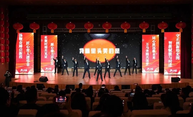颁奖期间还穿插了丰富多彩的节目表演,为表彰大会增添了浓厚的节日氛围。舞蹈《青苹果乐园》活力四射,话剧《千里马》寓意深远,小品《“导演”砸了》诙谐生动,小品《朋友圈的威力》贴近生活,舞蹈串烧欢快喜庆,歌伴舞《过年回家》温情满满,赢得了阵阵欢笑与喝彩。期间播放的VCR,回顾了一年来老师们的无私奉献、辛勤付出和学生丰富多彩的校园生活。