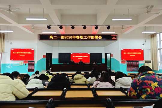 2月25日上午,高二年级一部在1号楼阶梯教室举行2026年春期工作部署会,全体教师参加。会议由级部主任李朝伟主持,在温暖的新春祝福中开启新学期的篇章。
