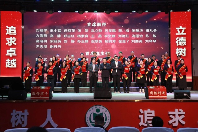 会上,党委副书记王文霞宣读了《关于表彰首席班主任、星级教师、十大年度人物、优秀研课组、优秀中心教研室等先进个人和集体的决定》。随后,获奖教师依次上台领奖,与会领导为他们颁发了荣誉证书、奖杯和礼品。